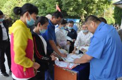 6月16日,伊力特股份公司釀酒一廠大門口,員工圍聚在咨詢臺前,聆聽安全員黃宗貴講解安全知識和法規等。