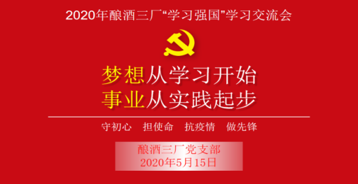 查看詳情“積土而為山,積水而為海。”自2019年,公司全力推廣使用“學(xué)習(xí)強(qiáng)國(guó)”學(xué)習(xí)平臺(tái)以來(lái),“學(xué)習(xí)強(qiáng)國(guó)”如同一縷和煦的春風(fēng)吹進(jìn)釀酒三廠,在這一年內(nèi),不僅催生綻放出了絢麗的花朵,還滿足了本廠廣大黨員干部和職工群眾多樣化、智能化、便捷化的學(xué)習(xí)需求。為貫徹落實(shí)公司黨委關(guān)于在疫情防控特殊階段科學(xué)合理的開(kāi)展黨內(nèi)組織活動(dòng)的決策部署,該廠黨支部借取這股春風(fēng),于2020年5月15日下午16點(diǎn)整,在電教室部署開(kāi)展了“學(xué)習(xí)強(qiáng)國(guó)”APP答題挑戰(zhàn)賽主題黨日活動(dòng),推動(dòng)習(xí)近平新時(shí)代中國(guó)特色社會(huì)主義思想往深里走、往實(shí)里走、往心里走。